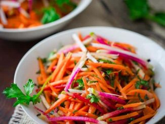O salata nu trebuie sa fie monotona, putem sa incercam diferite combinatii de legume care sa arate si bine in farfurie. Colorile sunt importante, astfel combinatia de rucola verde si morcov portocaliu ofera un constrast …