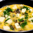 Ingrediente cartofi cu ciuperci la cuptor: 1,5 kg cartofi, 250 g ciuperci, 1 ceapa, 3 linguri untura, 3 linguri faina, 1 ceasca smantana, 1 ceasca zeama de ciuperci, 5 oua, verdeata, cateva foi de ceapa …
