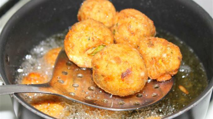 VIII. Se incinge ulei intr-o tigaie mai inalta (craticioara asa ii spun eu) si se prajesc chiftelutele pana prind o culoare aurie.