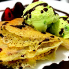 O minunantie de desert, se pregateste usor, cu ingrediente simple si are un gust nemapomenit. Am pornit de la aluatul pentru clatite americane in care am adaugat cacao si voila… au iesit niste clatite cu …