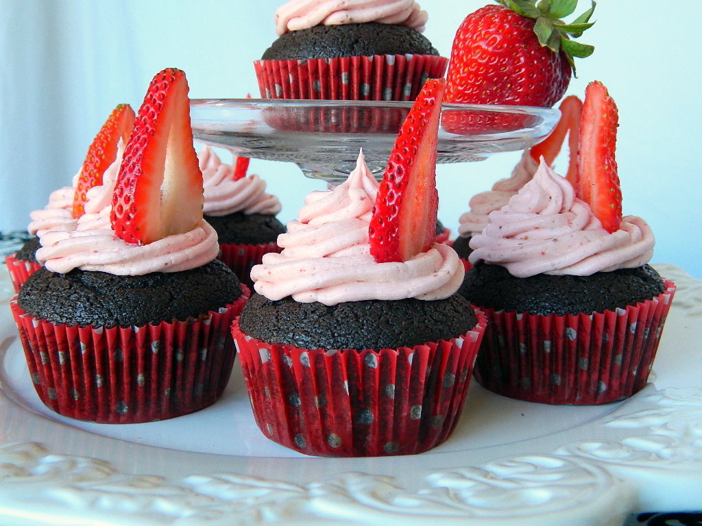 Ce ai putea sa prepari ca si desert intr-un weekend de iunie, ceva usor insa gustos si aromat si de ce nu cu fructe de sezon. Pai cum pe la piata au rasarit capsunile ca ciupercile dupa ploaie (oricum e o vreme ploioasa) am zis sa le utilizez in acest desert. Pana cum faceam prajitura din aluat de padispan unde puneam capsuni taiate, isa de aceasta data le-am combinat cu niste briose cu ciocolata si am facut o glazura din capsuni de te lingi pe degete. Incercati si voi e simplu !