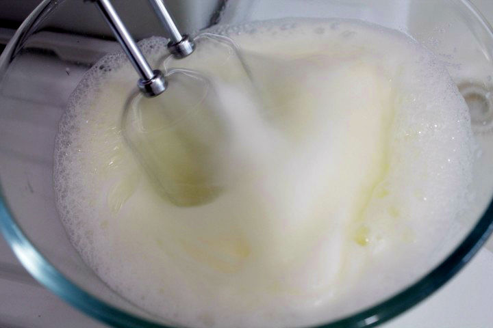 Se separa albusurile de galbenusuri, iar albusurile se bat spuma tare.