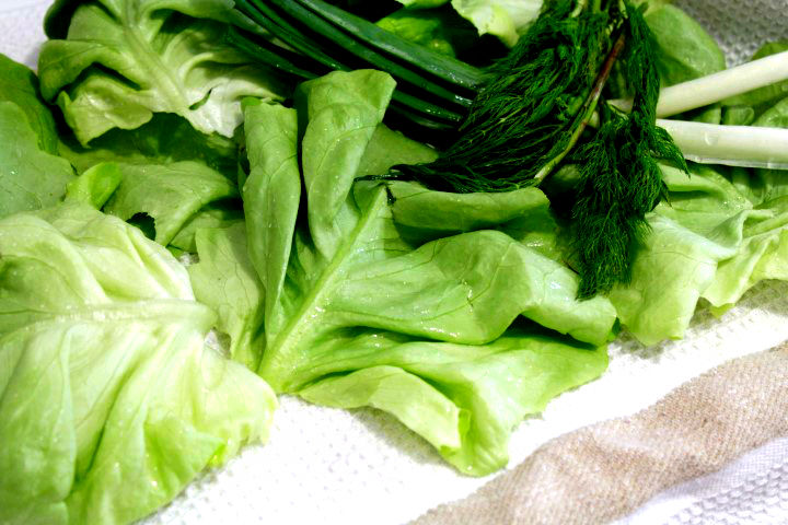 Salata se rupe frunza cu frunza si se spala bine, apoi se pune pe un prosop la scurs.