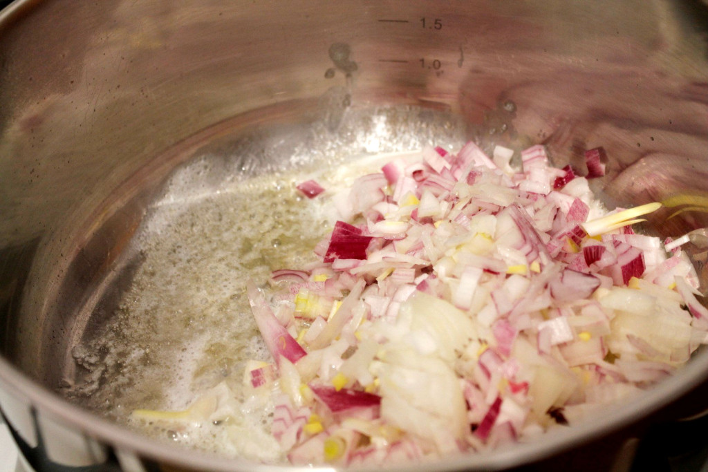 III. Ceapa se toaca marunt si se pune la calit cu o lingura de unt. Se tine pe foc cam 1-2 min pana devine putin sticloasa š !