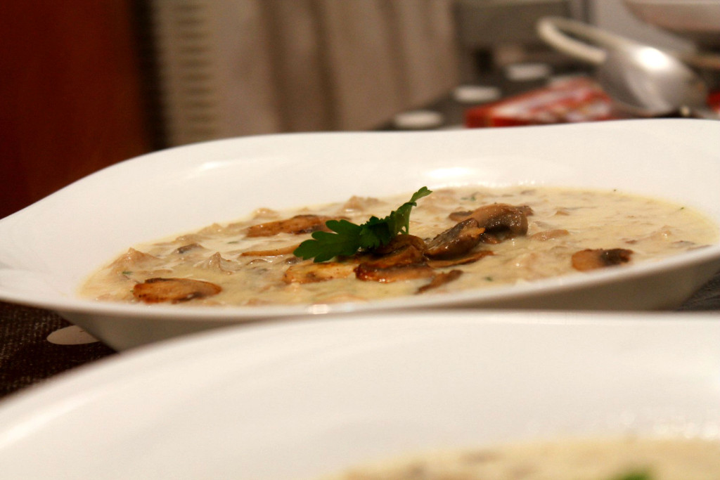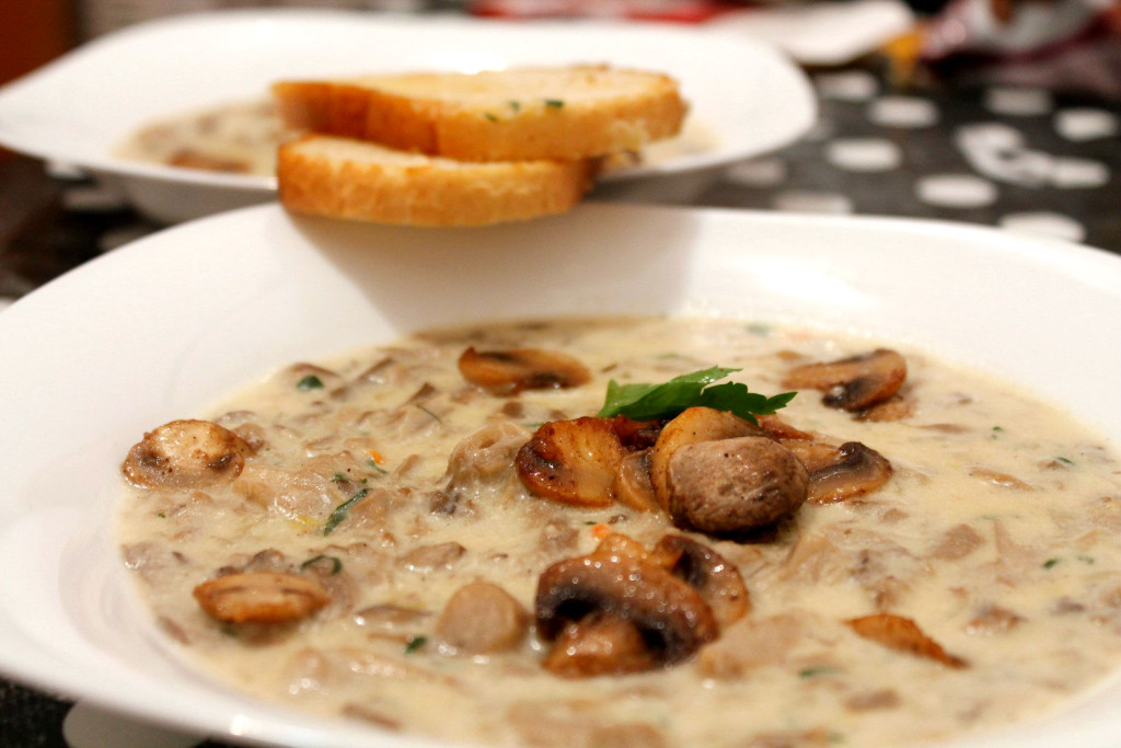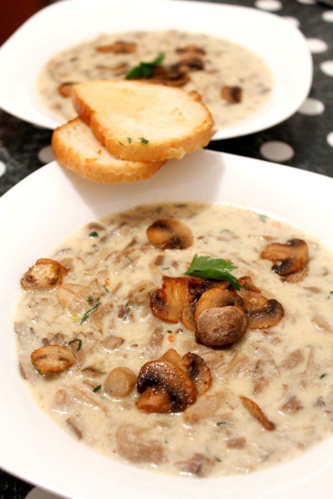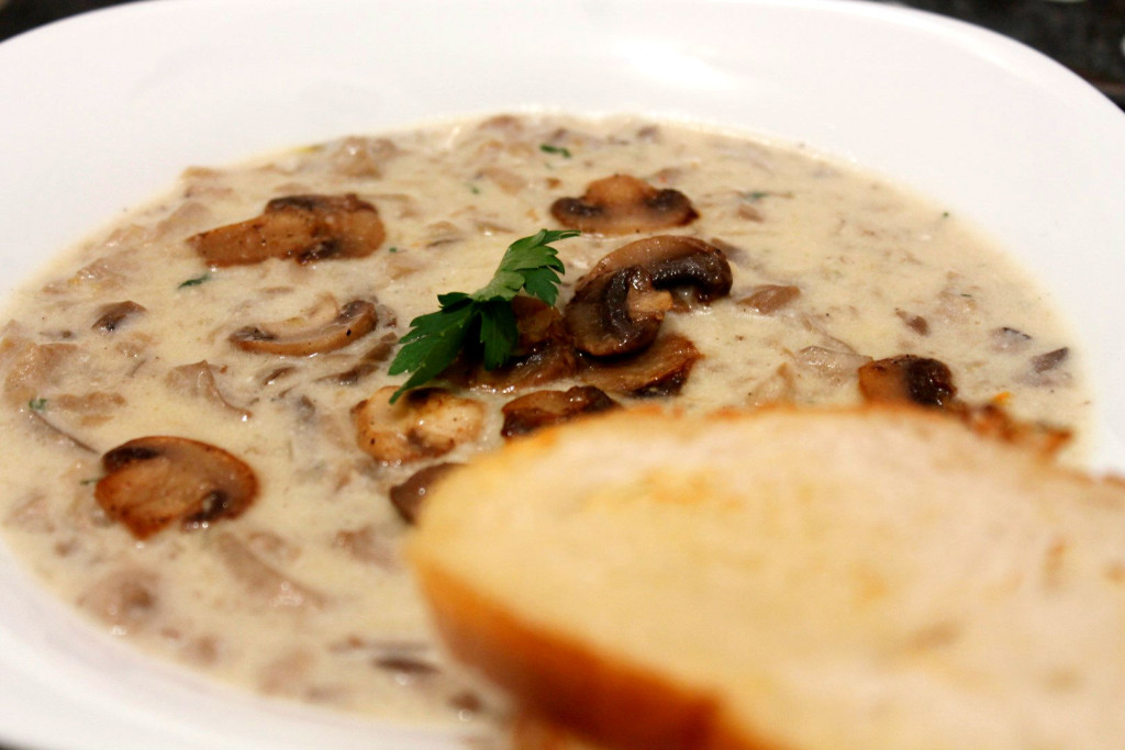 X. Se serveste cu ciuprcutele chapingnon pe deasupra, paine prajita si putin patrunjel verde.