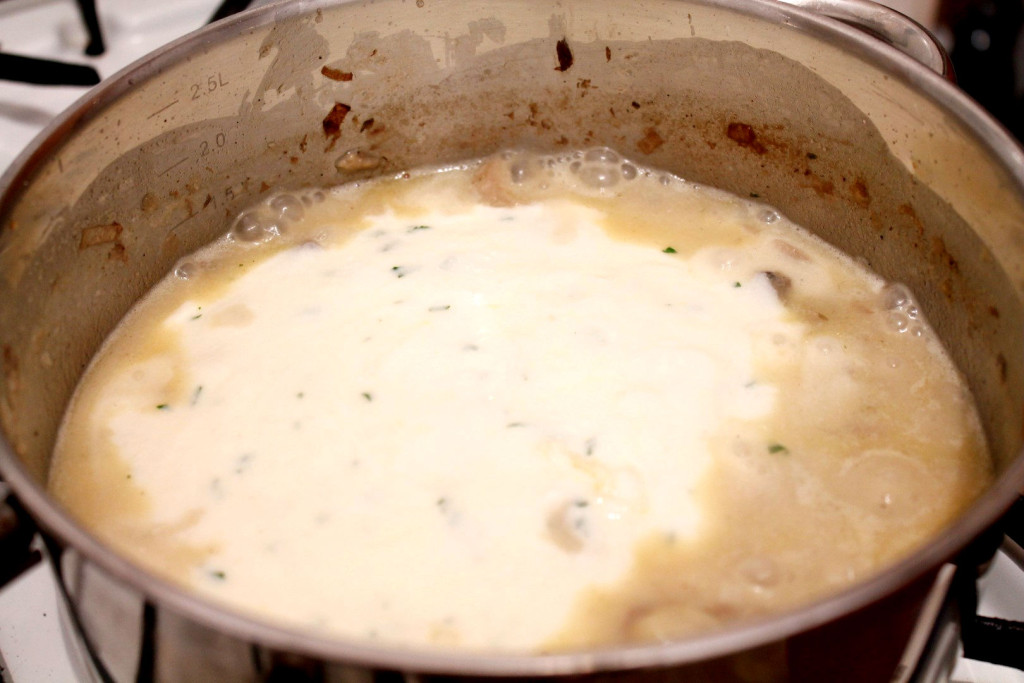 Nu e nimic spectaculos sau greu de preparat, insa sa aibe un gust bun la final si un aspect placut necesita putina atentie. De ceva vreme m-am tot chinuit sa prepar mancaruri cu ciuperci si smantana, gen ciulama sau pui cu smantana si ciuperci si de fiecare data exista ceva la final care nu-mi placea. Secretul a fost in momentul cand am trecut peste sfaturilor altora ca nu e bine sa pui faina in mancare sau sa fac un rantas care sa lege mancarea si astfel m-am tot chinuit incercand fel si fel de tipuri de smantana .. pana sa gasesc ceva astfel incat sa iasa ciulamaua exact ca o supa crema de ciuperci pe care o servesti la restaurant…dar de unde.