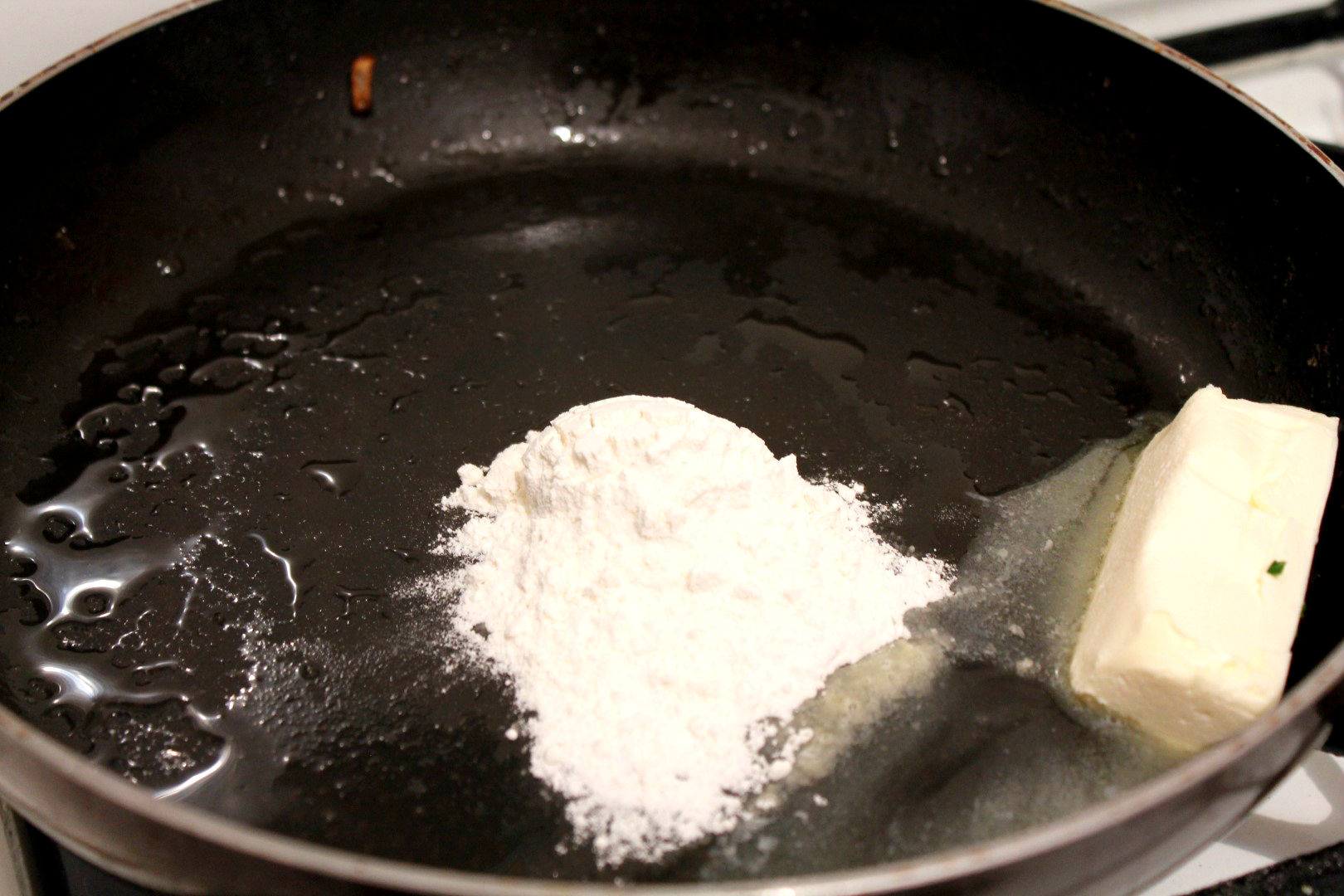 VII. Se topeste untul si se amsetca usor cu faina pana devine ca o crema aurie. Apoi se toarna usor laptele si se amesteca pana obtinem o consistenta de smantana.