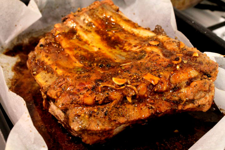 Greu greu insa a meritat pe deplin, friptura din coaste de porc la cuptor nu este o friptura usor de preparat, ai nevoie de indemanare si rabdare. Coacerea fripturii necesita un timp de aproape 3,5 ore timp in care trebuie sa umezesti friptura, sa schimbi hartia de copt sau sosul de tava.