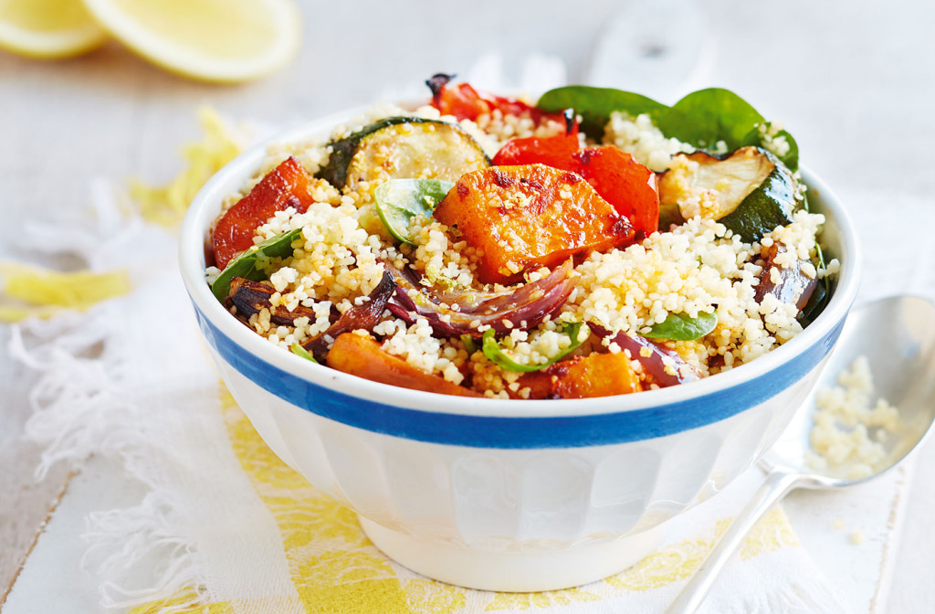 Pe o farfurie se pune cuscusul si sosul de legume si se decoreaza cu patrunjel.