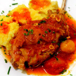 Se fierb, pe foc mic, timp de 20 de minute, apoi se adauga porumbul, bulionul, praful de curry, usturoiul pisat si se mai lasa cateva minute ca sa se imbine aromele.