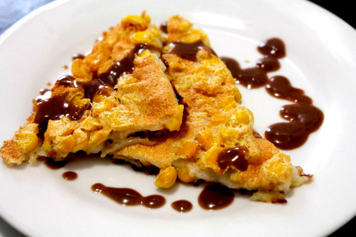 Revenin la desertul meu cu porumb dulce din conserva, … pai pot sa spun ca e simplu, aromat si ideal atunci cand vrei un desert gustos cu ingrediente putine si rapid de preparat. In loc de fineti poti sa folosesti  ciocolata topita, alba, neagra de care vrei, n-am incercat cu dulceata … insa cred ca merge si cu asa ceva.