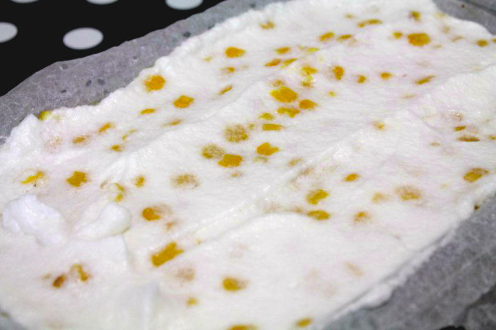 Se separa alabusurile de galbenusuri. Albusurile se pat spuma tare, apoi se adauga zaharul si se freaca pana acesta se topeste.