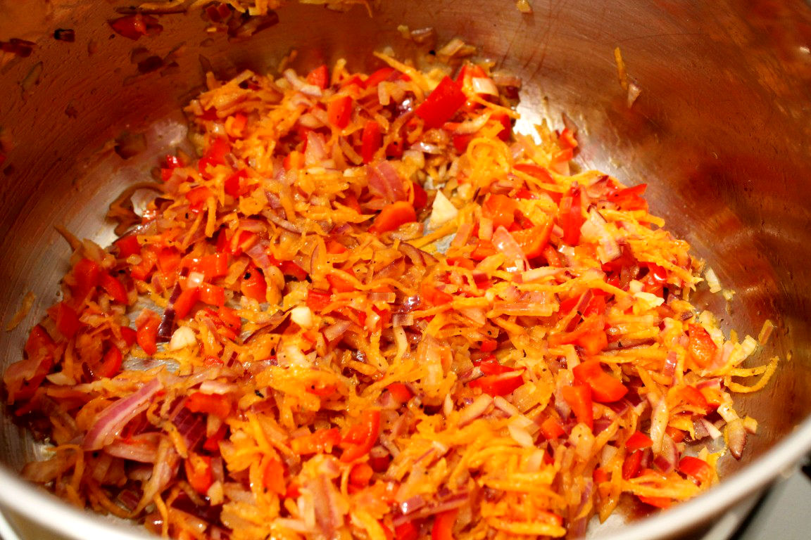 I. Fasolea se spala in 2-3 ape si se pune la scurs in strecuratoare. Ceapa se toaca marunt la fel si ardeiul iar morcovul se da pe razatoarea mica.