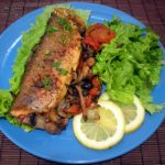Ca sa se patrunda bine trebuie sa folositi foc mic si se intorc de mai multe ori pe fiecare parte. Daca sunteti la Dukan in loc de smantana la mujdei folositi iaurt cu 0.1 % grasime, iar pe gril nu mai dati cu ulei deloc, nu o sa se lipeasca daca acesta este de calitate buna, in rest toate ingredientele respecta dieta in cel mai mic amanunt