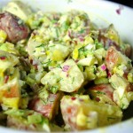 Servici cu un piure de cartofi cu arpagic si gogosari in otet.
