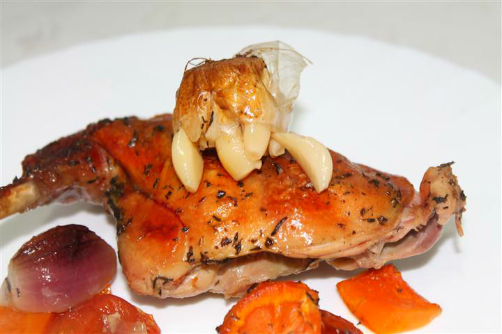 VI. Serviti alaturi de legumele din tava si usturoiul copt stors deasupra.