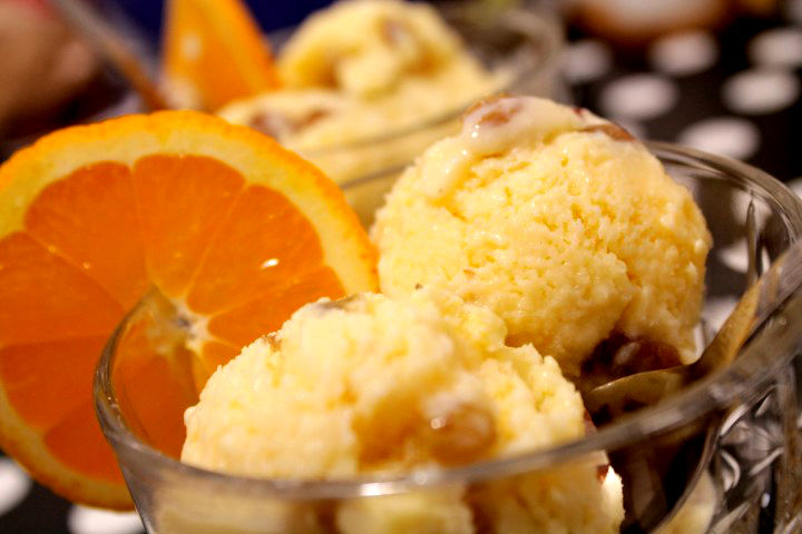 La aceasta reteta de inghetata de casa am folosit stafide si esenta de rom, am vrut sa am apropii de renumita inghetata de la Betty Ice (Malaga) un amestec de arome printre care rom, stafide o inghetata adorata de foarta multe lume. N-am folosit vreun aparat sofisticat de 300-500-1000 de EUR cum am vazut multe alte retete pe net, ca nu cred ca toti ne permitem sa cumparam astfel de jucarii doar ca sa ne facem inghetata in casa, asa ca pentru aducerea inghetatei in stare “solida” am folosit congelatorul frigiderului.