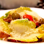 Se toarna intr-o caserola intinsa iar pea deasupra se pun stafidele scurse.