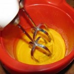- Intre timp bate galbenusurile cu zahar pana se ingroasa si devin pale la culoare.