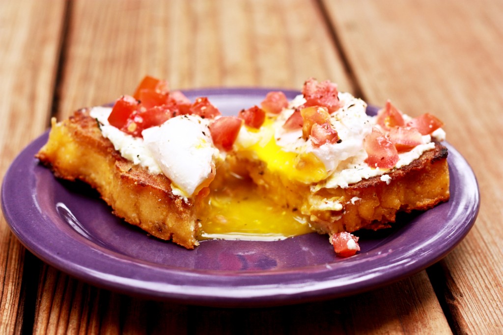 - Ca sa puteti intinde mai bine mamaliga, lucrati cu o lingura cu care luati si putina grasime si cubulete de afumatura prajita.