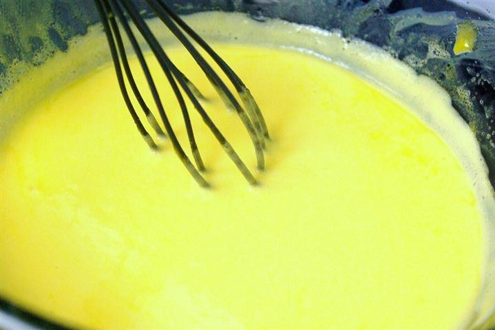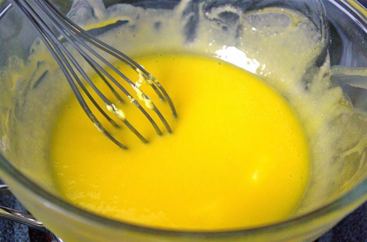 I. Intr-o oala se pune apa la fiert. Intr-un bol de yena, se pun cele 6 galbenusuri de ou cu untul si se pun la bain-marie, adica deasupra la oala unde ati pus apa la fiert. Atentie fundul bolului nu trebuie sa atinga apa, gatirerea sosului trebuie sa se faca doar la abur.