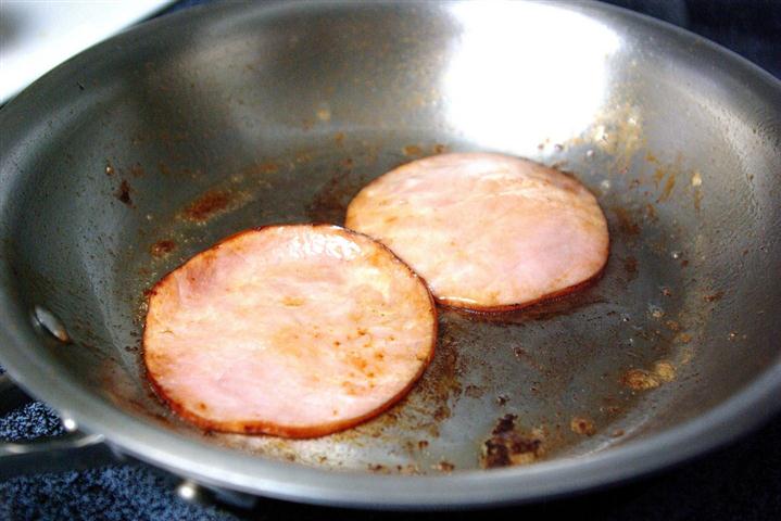 IX. Intr-o tigaie se pune cei 50 de g de unt si se prajesc feliile de bacon bine pe ambele parti.