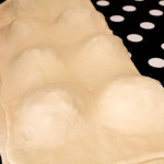 - Cu ajutorului unei cani sau un pahar cu gura mai mare se fac semne din loc in loc sa stiti unde sa puneti umplutura.