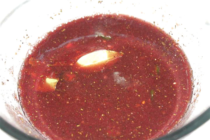 Pentru sos am folosit cimbru, sare, piper, foi de dafin, usturoi, vin si suc de rosii, toate cunoscute de fiecare dintre voi si pe care cu singuranta le aveti prin camara sau frigider. Am evitat sa folosesc salvie, tarhon sau eu mai stiu ce alt condiment pe care sincer pana mai acum 6-7 ani nici nu auzisem de ele :).