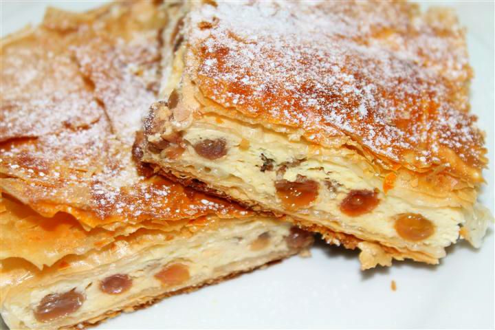 - Sugestie: Adauga in umplutura de branza aproximativ 200 g de stafide inmuiate intr-o cescuta cu rom si apoi scurse.