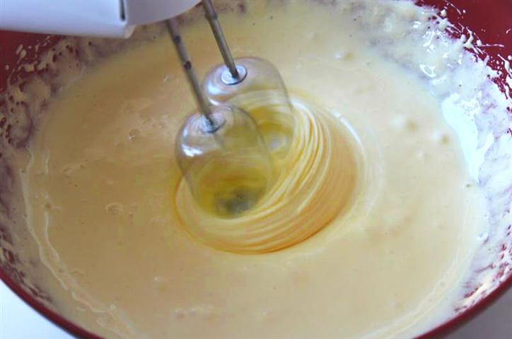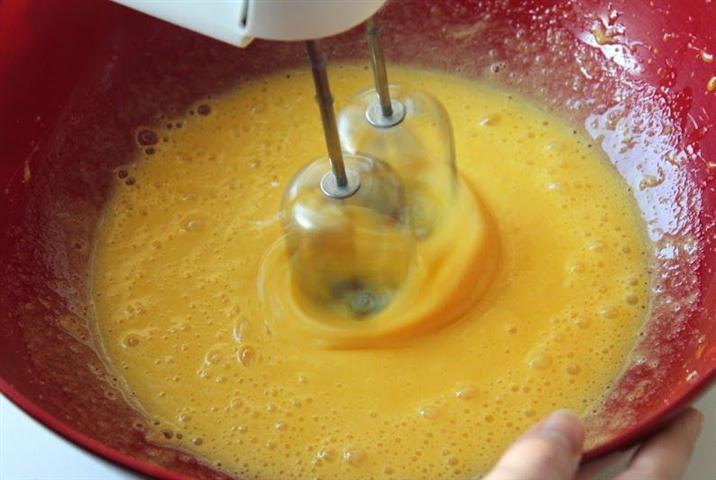 II. Intr-un bol se amesteca zaharul cu oualele si se bat bine cu mixerul la viteza medie spre mare pana devine un aluat spumos si mai deschis la culoare.