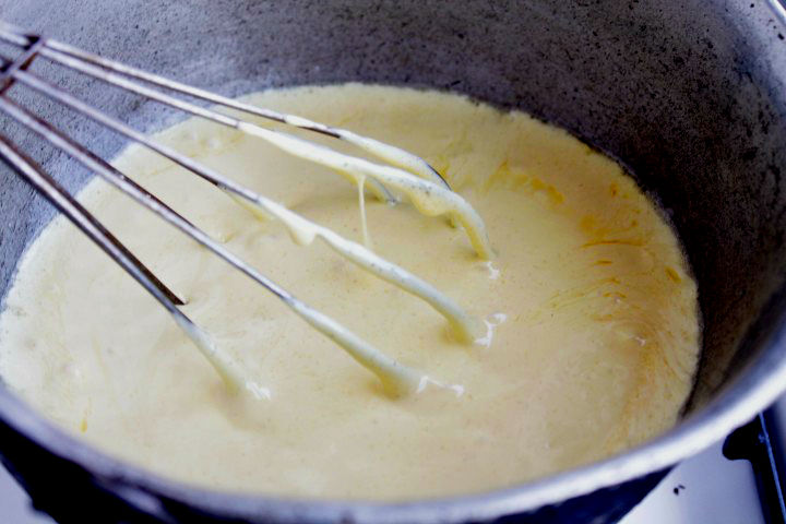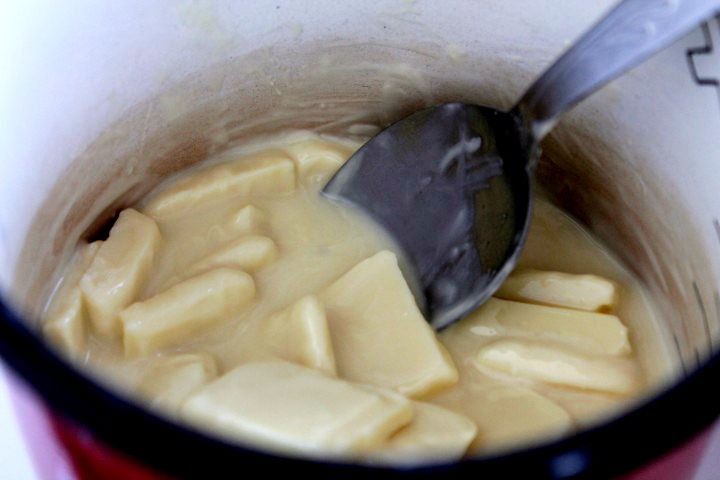 Amestecati tot timpul sa nu se prinda si sa prina o consistenta cremoasa.ย Dupa ce s-a topit lasati la racit.