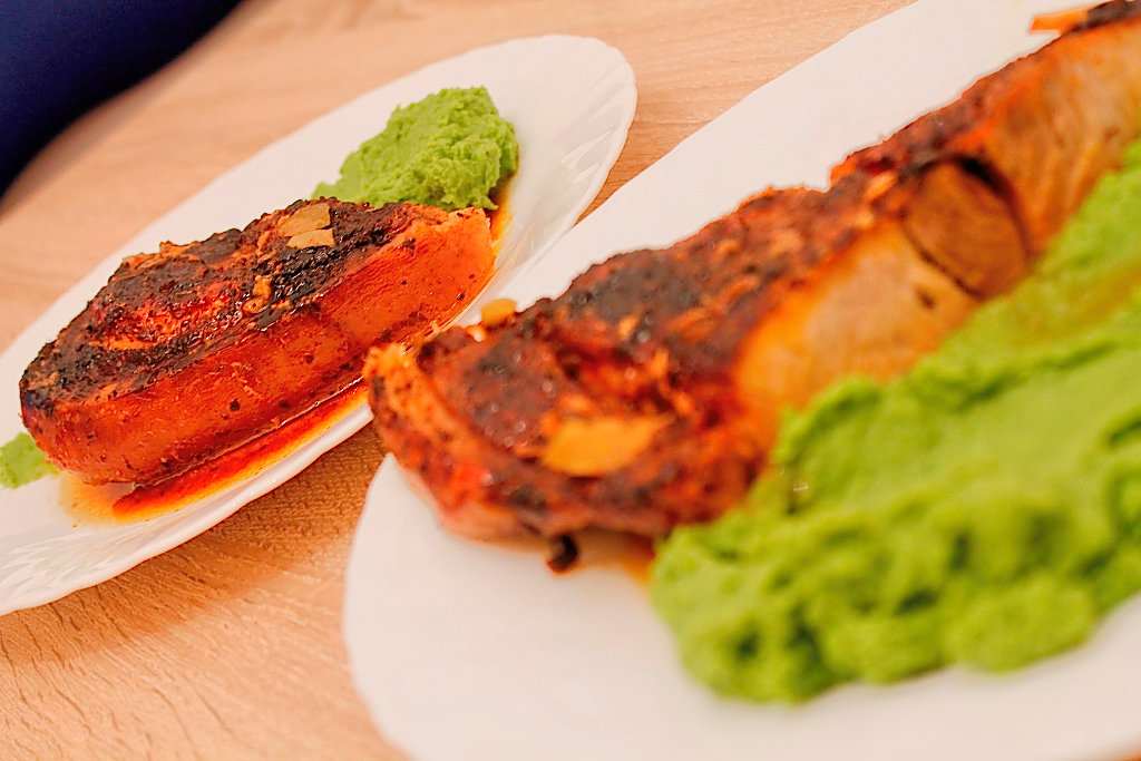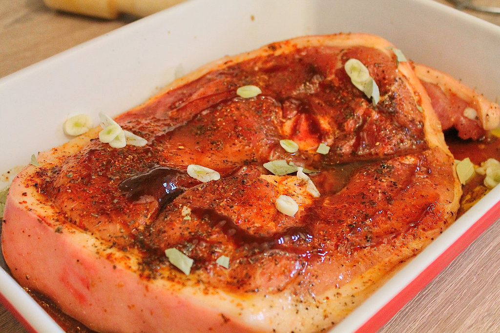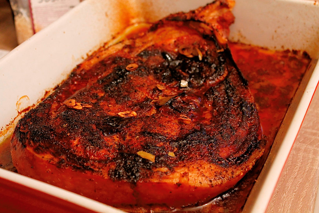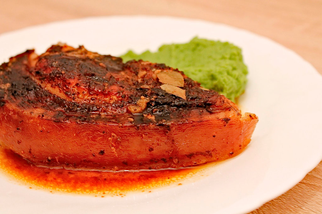 Ma gandeal la coaste, insa am mai facut….cotlet … iese cam uscat, …ceafa ..la fel e de baza la romani halim toti timpul, apoi mi-a sarit in ochi o pulpa cu os, o felie de ciolan, care arata foarte bine, cu grasime, sorici si osul plin de maduva. Am aruncat-o in cos, mi-am continuat cumparaturile si in drum spre casa ma gandeam cum sa o prepar in stilul meu !