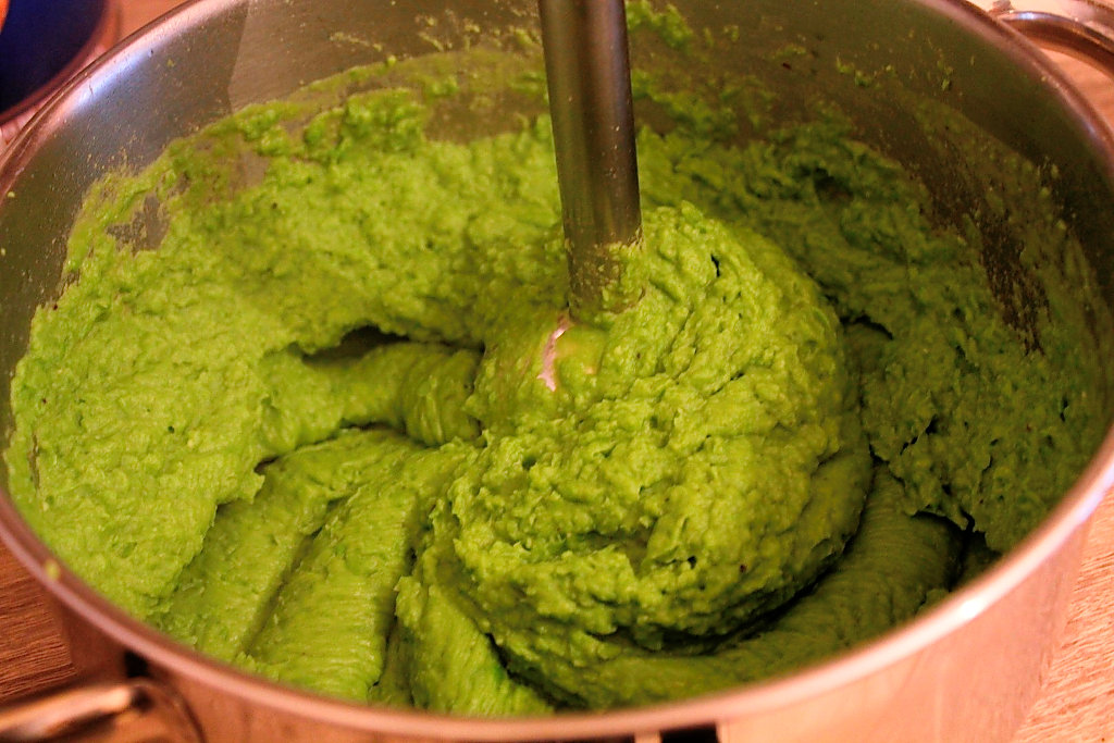 VII. Se pasteaza apoi cu blender-ul adaugand din cand in cand apa in care a fiert astfel incat sa obtinem consistenta dorita. Piureul de mazare trebuie sa fie fin si usor dulce.