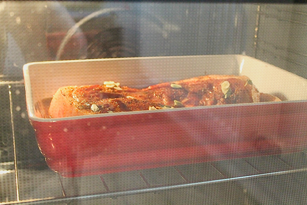 Ajuns acasa si m-am apuc de treaba…. o marinez putin dupa cum o sa descoperiti din pasii de mai jos, 2 ore la cuptor iar rezultatul a fost uimitor, a mers de minune cu piureul de mazare. Curcubeu pe cerul gurii ce sa mai zic.
