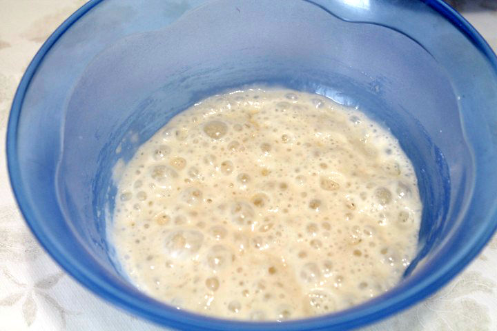 Amestecati bine, dupa care acoperiti cu un prospo si puneti la loc caldut pentru aproximativ 2 ore, pana cand se umfla si se face ca o spuma.