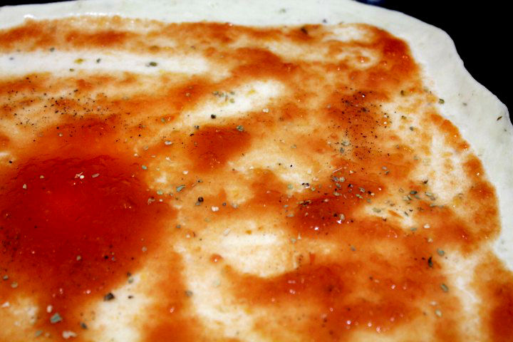 Ungeti prima data cu sosul de rosii, iar daca va place puteti sa puneti chilli, sau piper alb, boia, busuioc, sau poate un extra oregano.