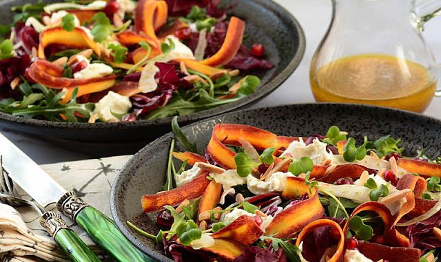 O salata nu trebuie sa fie monotona, putem sa incercam diferite combinatii de legume care sa arate si bine in farfurie. Colorile sunt importante, astfel combinatia de rucola verde si morcov portocaliu ofera un constrast cromatic senzational care iti face imediat pofta.