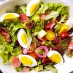 - Salata se poate garnisi cu oua rascoapte taiate in sferturi.