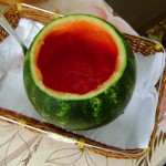 Vara cand s-au copt pepenii si ai pofta de ceva dulce,, ceva racoros poti sa incerci propunerea noastra salata de fructe in pepene. O salata usor de preparat, racoroasa plina de vitamine si substante nutritive, recomandata atat pentru cei mici dar si pentru cei mari. Se poatea realiza doar in anotimpul calduros si va sfatuiesc sa utilizati pepeni romanesti pentru ca sunt mai zemosi si mai gustosi.