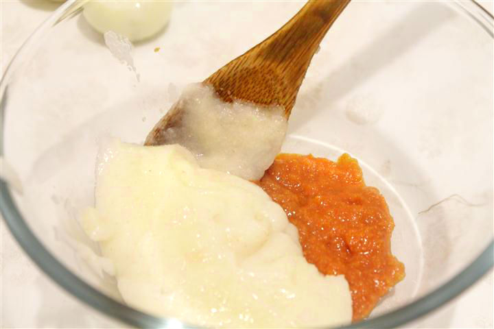Am vazut ca multi le prepara cu mixerul, mie imi place cat se poate de traditional, asa ca le frec cu lingura de lemn, astfel am posibilitatea sa le gust din cand in cand, fie mai adaug lamaie, fie ulei, sau apa minerala. Apa minerala are efectul se legare in caz ca se taie si de asemena sa le faca mai pufoase. Ceapa o puteti adauga si tocata cu robotul insa mie imi place mai mult tocata marunt de cutit pentru ca isi pastreaza integritatea si gustul mai intens. Cine vrea poate sa mai opreasca o lingurita de icre pe care sa o adauge la final in compozitie sa ofere o coloare mai portocalie salatei.