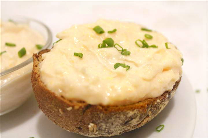 V. Salata de icre este ideala intinsa pe paine cu mici rondele de ceapa verde pe deasupra.