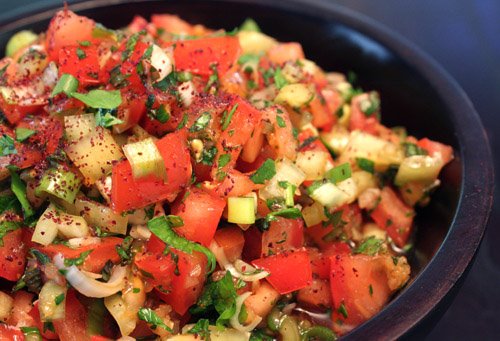Se pune rosia peste avocado si deasupra amestecul de ceapa si alge.
