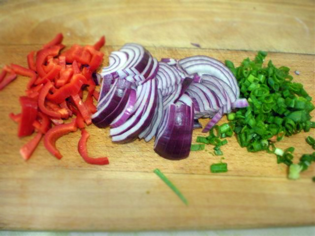 Ceapa rosie se taie julien, la fel si ardeiul kapia. Ceapa verde se taie cat mai marunt.