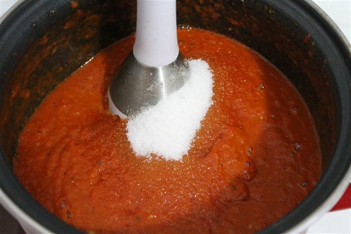 Adaugati si zaharul, amestecati din nou cu belnder-ul si daca mai este necesar adaugati sare sau piper.