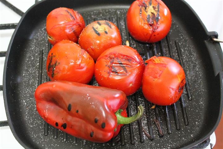 Ceapa se curata de foi. Se pune rosiile cu ardeiul si ceapa taiata in 2 la copt pe un grill sau tigaie.