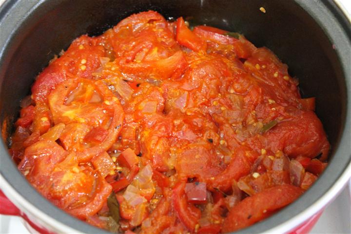 Ardeiul nu se lasa sa se coaca foarte mult, se ia de pe foc si se toaca marunt impreuna cu ceapa.
