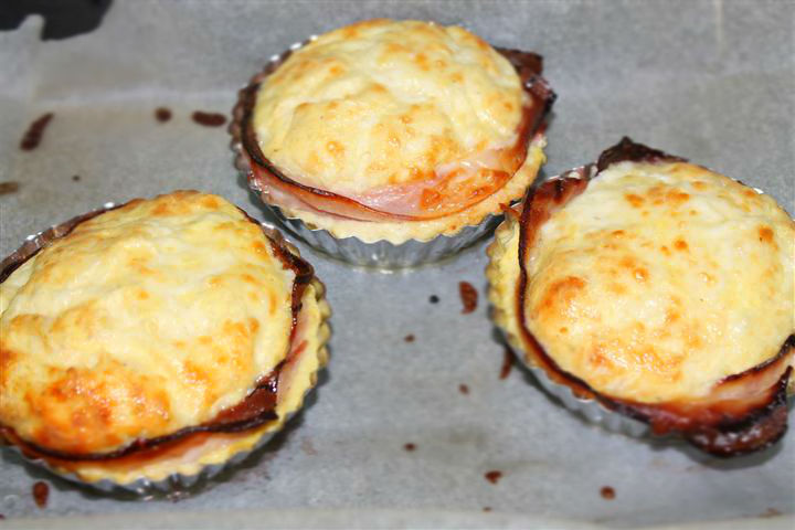 Se umplu cu aluatul din ou, cascaval si smantana. Se adauga putin cascaval ras pe deasupra