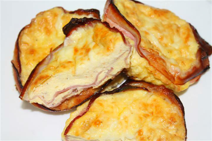 Formele se ung cu putin unt si se captusesc cu felii de bacon